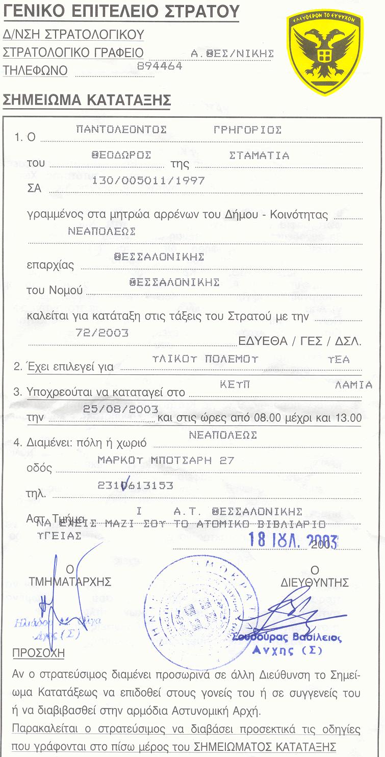 Λόγω ανειλημμένων στρατιωτικών υποχρεώσεων η αγαπημένη σας σελίδα (λέμε τώρα...) δεν θα είναι διαθέσιμη τουλάχιστον μέχρι τον Αύγουστο του 2004. Παρακαλείστε να επικοινωνείτε με τον κ. Γρηγόρη Παντολέοντος στο email: [email protected] και αυτός θα σας απαντήσει μόλις πάρει άδεια ή μόλις μπουν internet cafe στα ΚΨΜ. Καλή φυτεία και σε σας... |